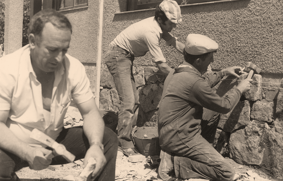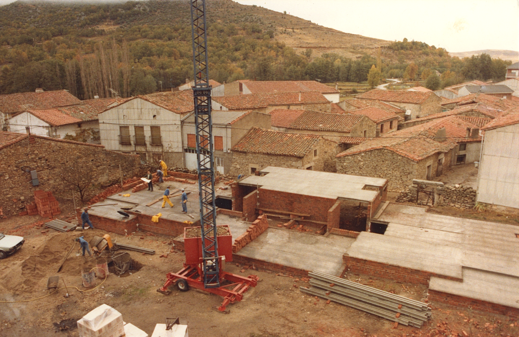 Obras en los años 80 en la comarca, construyendo una Casa doble familiar.